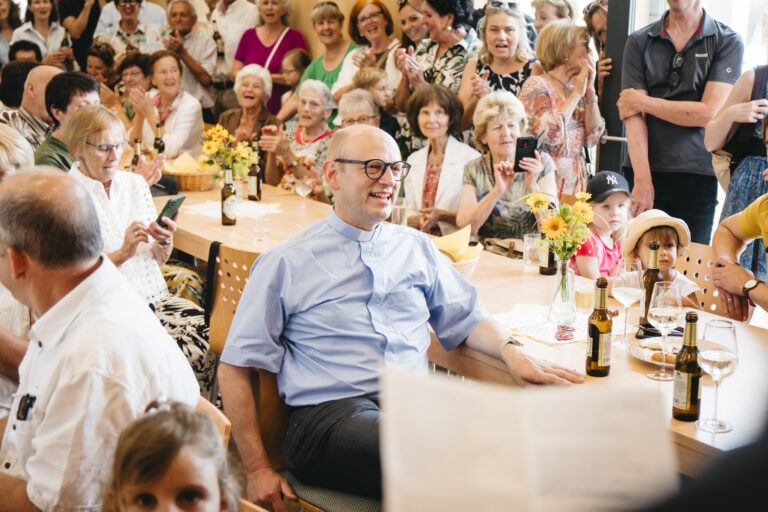 Am Ende der Messe lud Herr Pfarrer Grill zur Agape mit „Grill“-Wein und Wieninger „Ruperti“-Bier ein.
